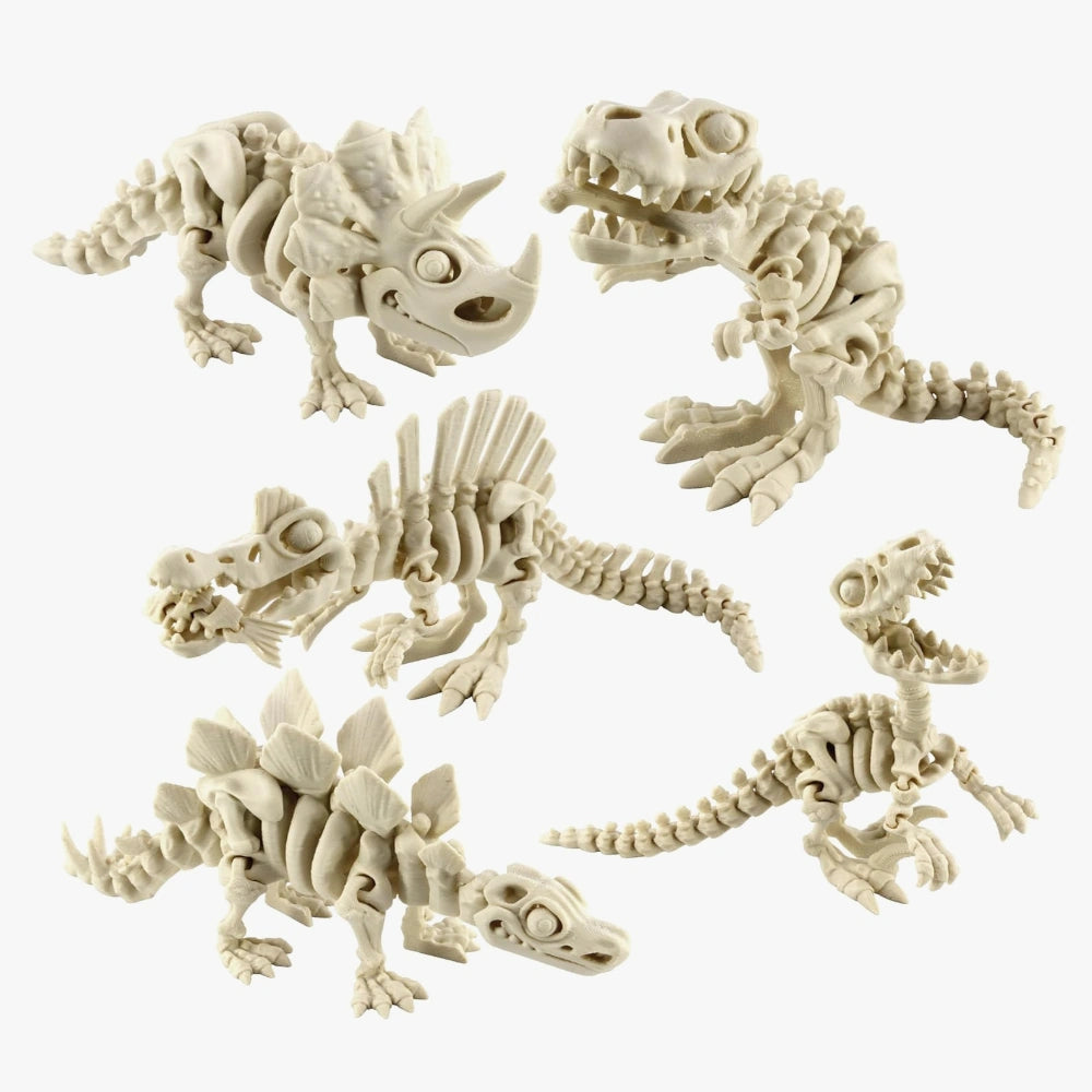 - 🦴 Includes 5 articulated 3D printed dinosaurs : T-Rex, Triceratops, Stegosaurus, Velociraptor & Spinosaurus